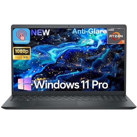 Dell Inspiron 15 3535 Touchscreen Business Laptop - AMD Ryzen 7 7730U Processor (8 Cores), 15.6" Anti Glare FHD Display, 16GB RAM, 1TB SSD, Numeric Keypad, Webcam, Win 11 Pro
