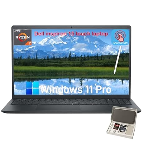 Dell Inspiron 15 Touchscreen Laptop Computer for Business, 16GB RAM, 512GB SSD, Windows 11 Pro, AMD Ryzen 7 7730U, 15.6" WVA LED FHD Anti-Glare Display, Numeric Keypad, with Accessories