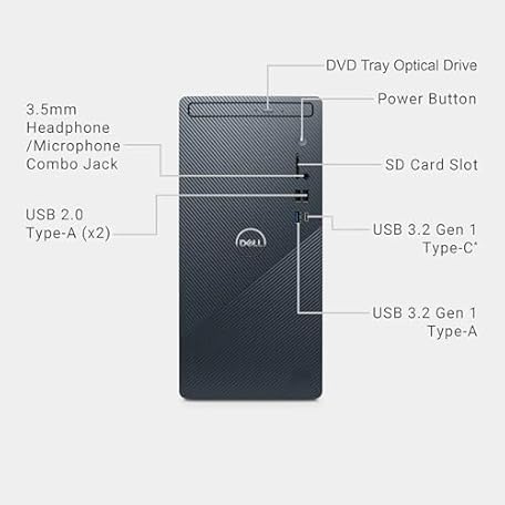 Dell Inspiron 3030 Tower Desktop Computer - 14th Gen Intel Core i7-14700 up to 5.40 GHz Processor, 32GB DDR5 RAM, 1TB NVMe SSD + 1TB HDD, Intel UHD Graphics 770, DVD+RW, Windows 11 Pro