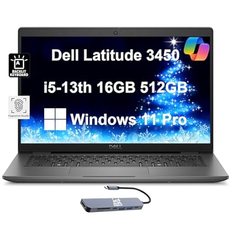 Thông tin sản phẩm Dell Latitude 3450 Business Laptop (14" FHD Anti-Glare, Intel 10-Core i5-1335U (Beat i7-1355U), 16GB DDR5 RAM, 512GB SSD) Backlit, Fingerprint, Ethernet, FHD Webcam, IST HUB, Win 11 Pro w/AI Copilot
