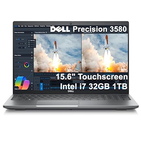 Dell Precision 3580 Mobile Workstation Laptop (15.6" FHD Touchscreen, Intel 10-Core i7-1355U, 32GB RAM, 1TB SSD) for Business, Engineer, Backlit, 1080p IR Webcam, 2xThunderbolt 4, Wi-Fi 6E, Win 11 Pro
