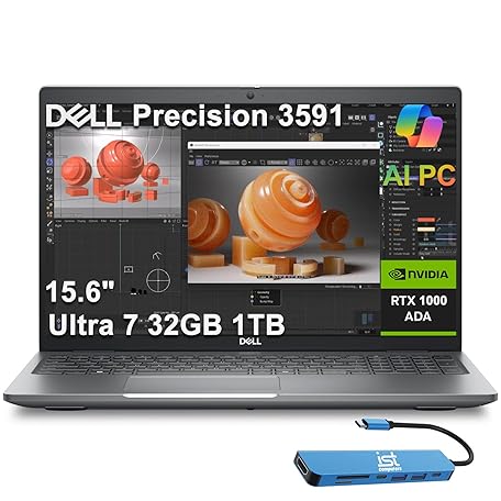 Dell Precision 3591 Mobile Workstation AI PC Laptop (15.6" FHD, Intel 16-Core Ultra 7 165H, 32GB DDR5, 1TB SSD, NVIDIA RTX 1000 Ada 6GB) for Business, Engineer, Thunderbolt 4, IST HUB, Win 11 Pro