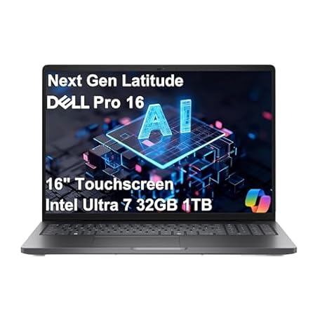 Dell Pro 16 (Next Gen Latitude) Business AI PC Laptop (16" FHD+ Touchscreen, Intel Core Ultra 7 265U ( i7-1355U), 32GB DDR5 RAM, 1TB SSD), Backlit, Wi-Fi 6E, 1080p IR Webcam, Win 11 Pro, PC16250