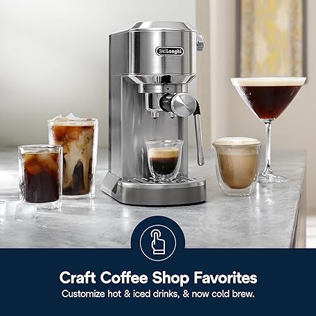 Thông tin sản phẩm De'Longhi Dedica Duo Compact Espresso Machine - Cold Brew Coffee Maker with Milk Frother Wand- for Espresso, Hot & Iced Coffee, Cappuccinos, Lattes & Home Barista Brewing, Stainless Steel Finish