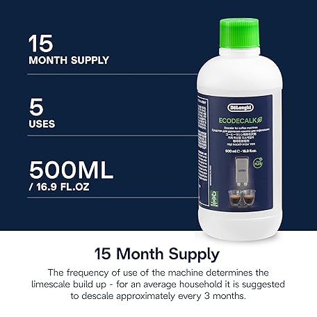 Thông tin sản phẩm De'Longhi EcoDecalk Descaler, Eco-Friendly Universal Descaling Solution for Coffee & Espresso Machines, 16.90 oz (5 uses)
