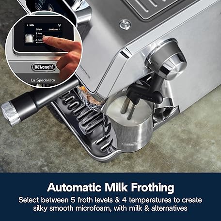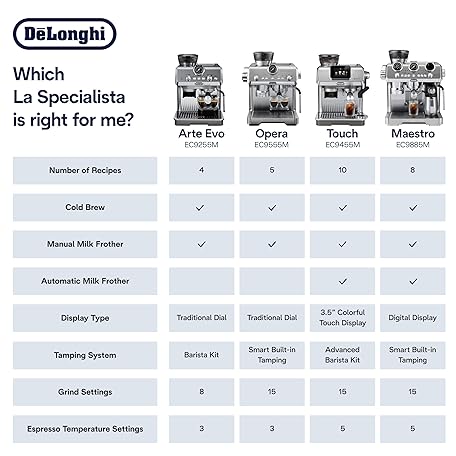 Thông tin sản phẩm De'Longhi La Specialista Touch Espresso Machine with Grinder & Milk Frother – Cold Brew & Iced Coffee Maker, Burr Grinder, 10 Drink Presets, Compact Bean to Cup, Award-Winning Italian Design