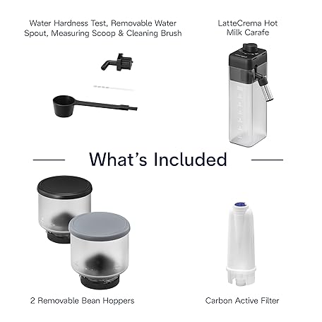 Thông tin sản phẩm De'Longhi Rivelia Automatic Espresso Machine with Grinder & Milk Frother – All-in-One Coffee Maker, Hot & Iced Latte, Cappuccino, Bean Switch System, Burr Grinder, Compact Italian Design, Black
