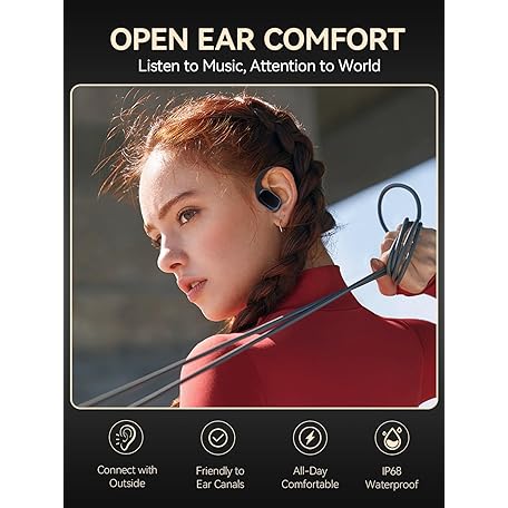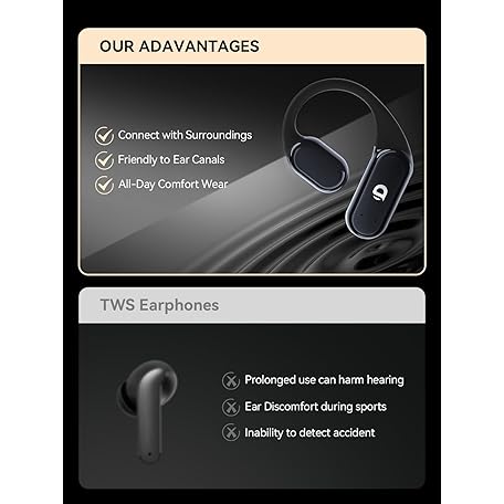 Thông tin sản phẩm DEMICEA True Wireless Bone Conduction Earphones, OWS Open Ear Headphones with Earhooks, Bluetooth 5.3, Up to 60H Playtime with Case, IP68, AAC/SBC, for Cycling Yoga Workouts