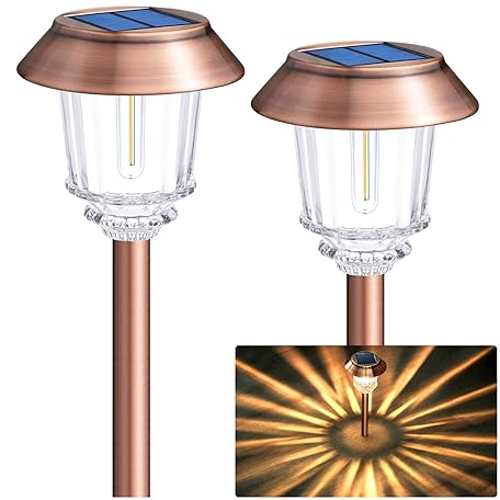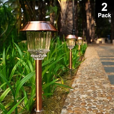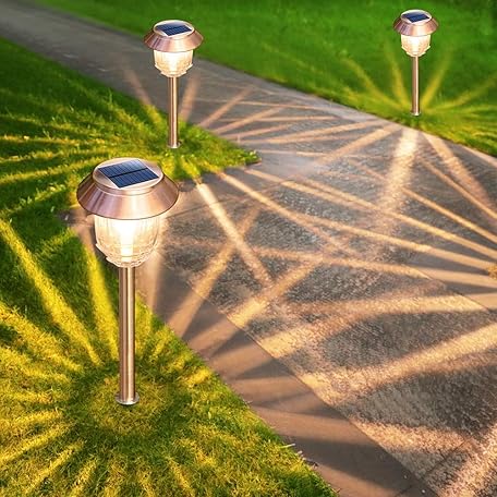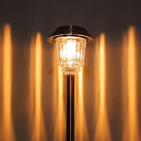 Thông tin sản phẩm DenicMic Solar Garden Lights Outdoor Pathway Lights Glass Stainless Steel Waterproof Solar Powered Landscape Lighting for Yard Patio Lawn Path Walkway, Super Bright 12-40 Lumens, 2 Pack