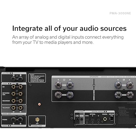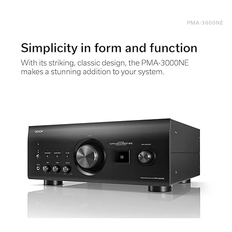 • Denon PMA-3000NE Integrated Amplifier (80W x 2-Ch), Black, Versatile Home Stereo Amplifier with 7th-Gen Ultra AL32 Processing, MM/MC Phono Preamp, Pure Analog Mode, Optical, Coaxial & RCA Inputs