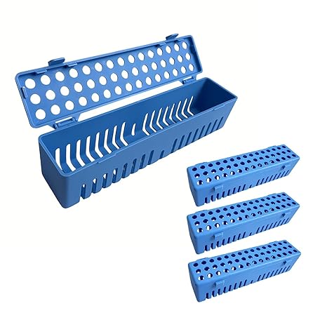 Dental Autoclave Sterilizer Box Large Plastic Sterilization Cassettes Dental Instrument Rack Cassette Tray for Dental, Medical Tool, Tattoo, Nail (Upgrade Version- 4*Blue)