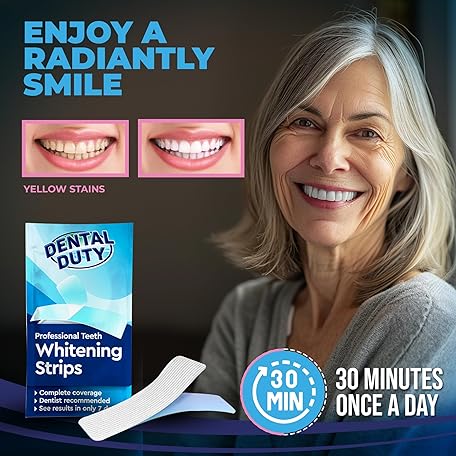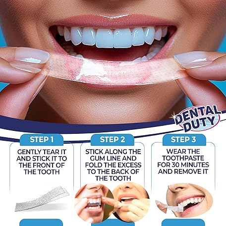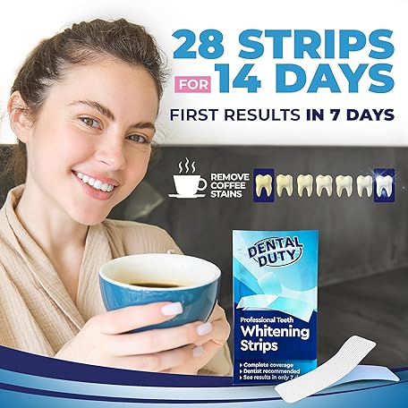 • Dental Duty Teeth Whitening Strips – 28pcs Vegan White Strips for Teeth Whitening – Enamel-Safe Teeth Whitener – Removes Coffee & Tea Stains – Non-Toxic, Sensitivity-Free Teeth Whitening Kit.