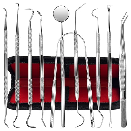 Sản phẩm Dental Kit Tools, 10 Pack Stainless Steel Plaque Remover, Dental Tools to Remove Plaque and Tartar, Oral Care Kit with Plaque Cleaner, Tartar Pick, Tooth & Tongue Scraper for Dentist, Personal, Family đang được bán với giá ưu đãi là $10.8346 tại nước Mỹ.
