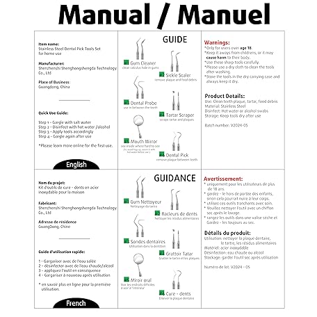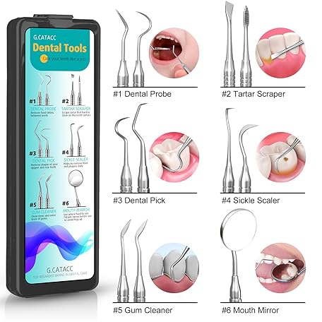 Thông tin sản phẩm Dental Tools, Dental Pick for Teeth Cleaning, Stainless Steel Hygiene Kit with Tooth Scraper Plaque Tartar Remover - with Case
