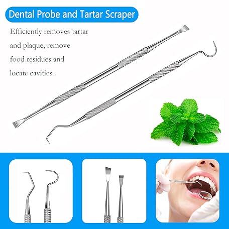 Thông tin sản phẩm Dental Tools, Professional Plaque Remover Teeth Cleaning Tool Kit, Stainless Steel Dental Pick Tartar Scraper Tooth Cleaner, Oral Care Hygiene Set for Dentist Personal Pets with Storage Box