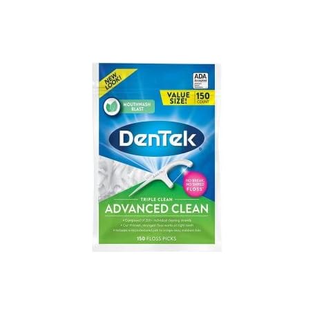 • DenTek Triple Clean Advanced Floss Picks, No Break & No Shred Floss, 150 Count. (Pack of 4)