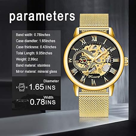 Sản phẩm Dentily Men's Skeleton Watch Classic Roman Numeral Steampunk Mechanical Watch Hand-Wind Mens Watches (Blue) đang được bán với giá ưu đãi là $37.0491 tại nước Mỹ.