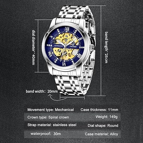Sản phẩm Dentily Men's Watch Mechanical Stainless Steel Skeleton Automatic Waterproof Business Watches for Men… đang được bán với giá ưu đãi là $28.3291 tại nước Mỹ.