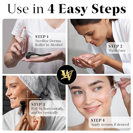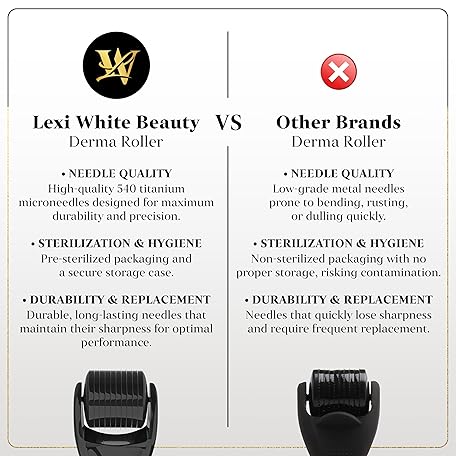 Derma Roller for Skin, Hair & Beard – Women and Men Titanium Microneedling Roller for Face & Scalp, Safe & Easy to Use - Jet Black