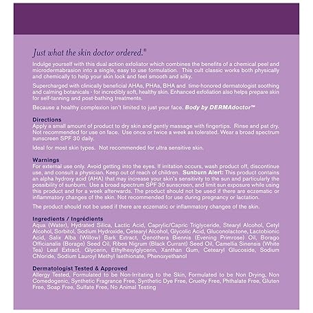 Thông tin sản phẩm DERMAdoctor KP Bump Eraser Body Scrub with 10% AHAs + PHAs for Keratosis Pilaris, Dry, Rough, and Bumpy Skin, Dermatologist Formulated Exfoliating Body Scrub with Glycolic and Lactic acids - 16 Fl oz