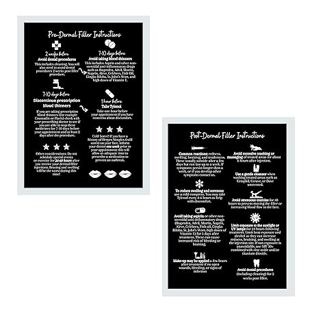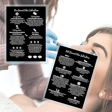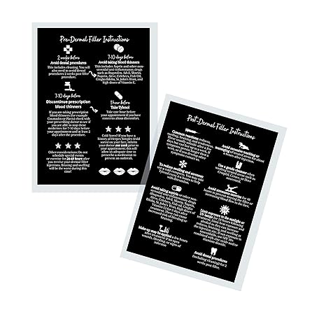 Sản phẩm Dermal Filler Pre and Post Injection Care Instructions Card | 30 Pack | 5x7” inches large Post Card Size | Dermal Filler Injections Black with White Icons Design đang được bán với giá ưu đãi là $13.08 tại nước Mỹ.