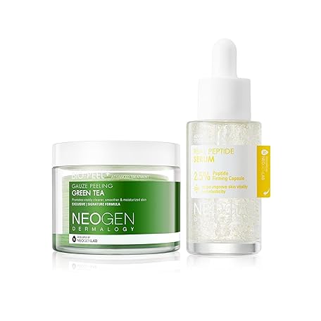 DERMALOGY by NEOGENLAB Bio-Peel Gauze Peeling Pads Green Tea, 30 pads & Real 2.5% Peptide Serum for Face