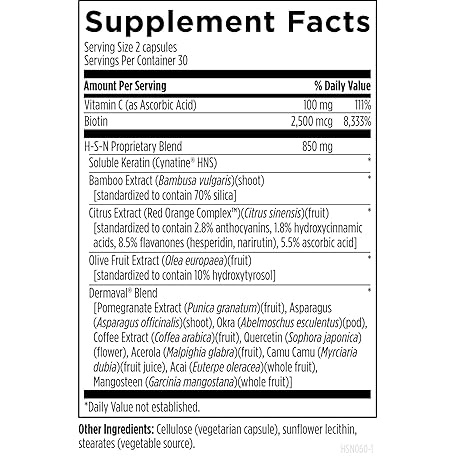 Thông tin sản phẩm Designs for Health H-S-N Radiance - Hair Skin Nails Vitamins for Women and Men - Promote Healthy Hair, Skin Elasticity & Strong Nails with Vitamin C, Biotin, Keratin & Botanicals (60 Capsules)