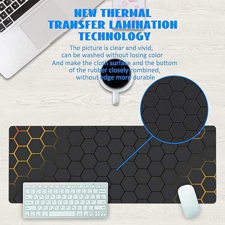 Thông tin sản phẩm Desk Mat, Black Gold Honeycomb Technology Extended Gaming Mouse Pad Large, 31.5"x11.8" Big Mouse Pad with Non-Slip Base and Stitched Edge, Long Computer Keyboard Mouse Mat for Home Office Work