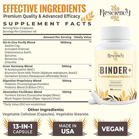 Thông tin sản phẩm Detox Binder Supplement – Activated Charcoal, Zeolite, Bentonite Clay, Milk Thistle, Proprietary Blends - Liver & Gut, Max Absorption, 180 Vegan Capsules