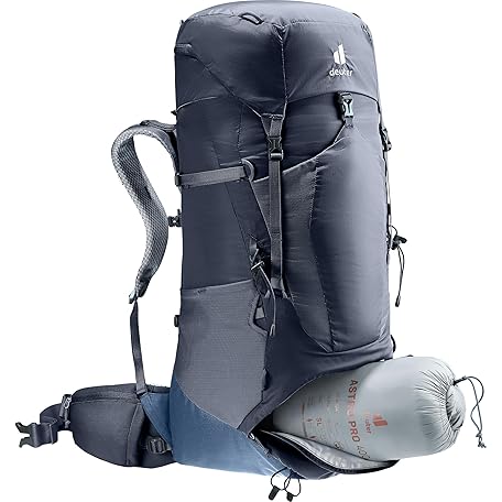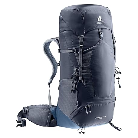 Deuter Unisex Aircontact Lite 50 + 10 L, Lightweight Backpacking & Hiking Backpack for Men & Women, 50 + 10 Liters - Black-Marine