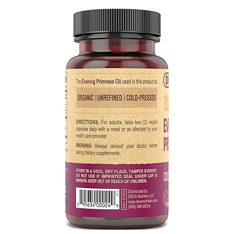 Thông tin sản phẩm DEVA Vegan Evening Primrose Oil, Cold-Pressed, Unrefined, 90 Capsules, 1-Pack