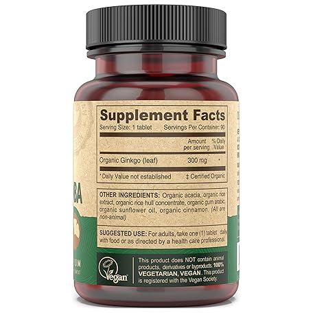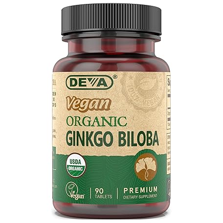 Thông tin sản phẩm DEVA Vegan Ginkgo Biloba Dietary Supplement, USDA Organic, Vegan Society Certified, Easy-to-Swallow Tiny Tablets, 300 mg., 90-Count Bottle