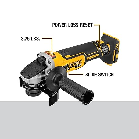 Thông tin sản phẩm DEWALT 20V MAX* XR Angle Grinder with Kickback Brake, Slide Switch, 4-1/2-Inch, Tool Only (DCG405B)