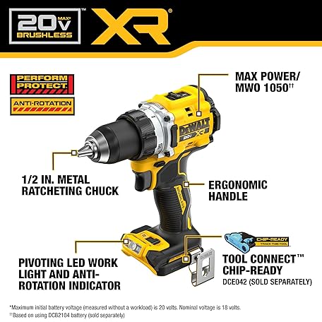 • DEWALT 20V MAX XR Brushless Cordless 1/2 in. Drill/Driver (Tool Only) (DCD801B)