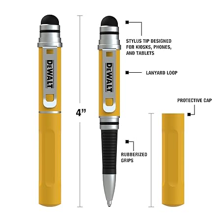 Thông tin sản phẩm DEWALT Heavy Duty 3-in-1 Mini Stylus Pocket Pen, Tablet Pens for iPad, EDC Touch Screen Pens, Ballpoint w/Touchscreen Tip, Keypad Tip, Compatible iPhone Stylus Pen, Extra Ink Cartridge, Gifts for Dad