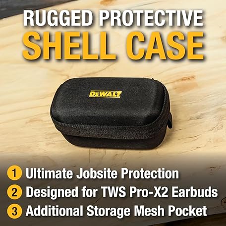 Thông tin sản phẩm DEWALT Heavy Duty Protective Headphone Case for TWS ProX2 ANC Earbuds, Compact Lightweight w/EVA Earphone Hard Shell Case, Headset Travel Carry Shock/Water-Resistant, Soft Interior & Accessory Pocket