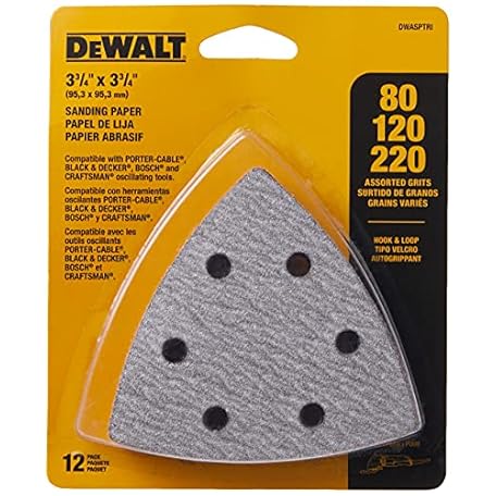 DEWALT Sandpaper Assortment, Hook and Loop Triangle, 12-Pack (DWASPTRI)
