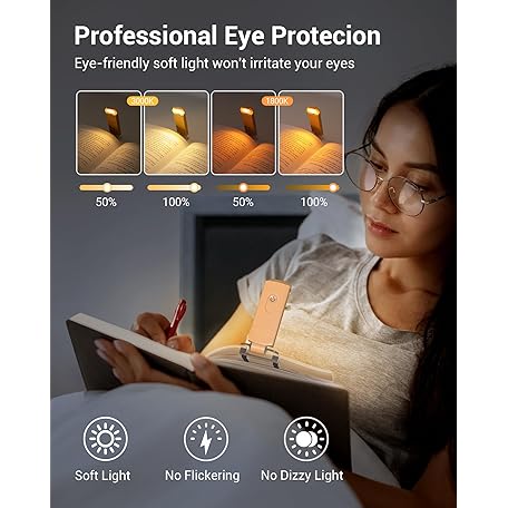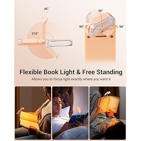 DEWENWILS USB Rechargeable Book Light, LED Clip on Reading Lights for Books in Bed at Night, Portable Bookmark Lamps, 4 Brightness Adjustable, Perfect for Bookworms, Kids (Peach Fuzz)