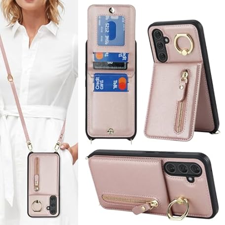 DEYHU for Samsung Galaxy A54 5G Case with Card Holder and Strap for Women,Crossbody Lanyard,Ring Stand,Snap Clasp,Phone Wallet Case - Rose Gold