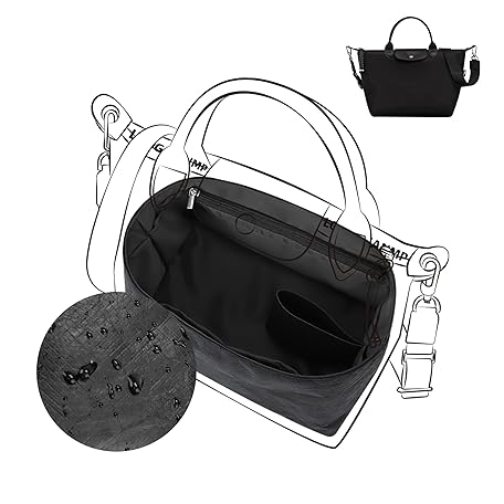 DGAZ DGAZ Lightweight Purse Organizer Insert for Longchamp-Le Pliage Energy Series Bag,silk and DupontPaper handbag inner for Luxury Bag(Black,Le Pliage Energy XS)
