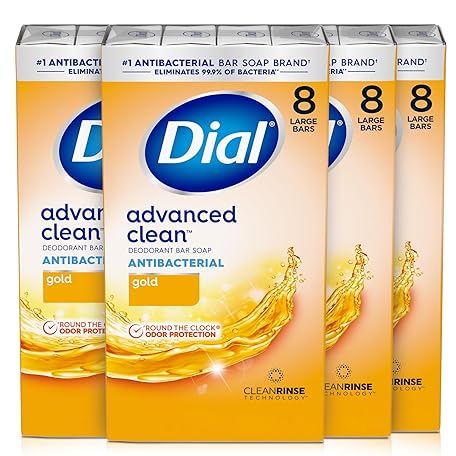 Sản phẩm Dial Antibacterial Deodorant Bar Soap, Advanced Clean Gold, 4 Oz, 32 Bars, Round the Clock Odor Protection, Dermatologist Tested, With Clean Rinse Technology đang được bán với giá ưu đãi là $22.8028 tại nước Mỹ.