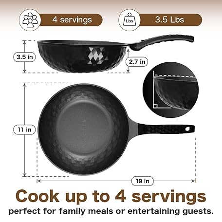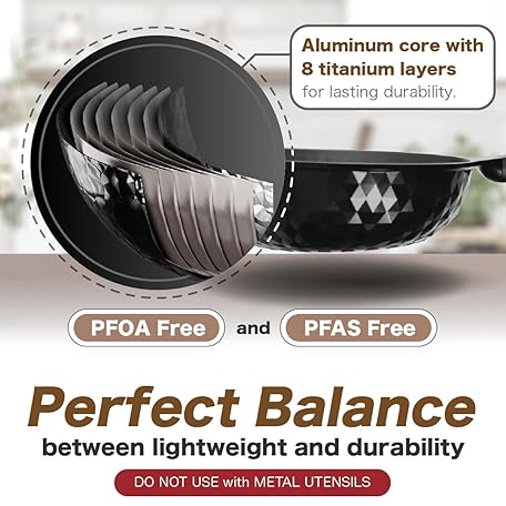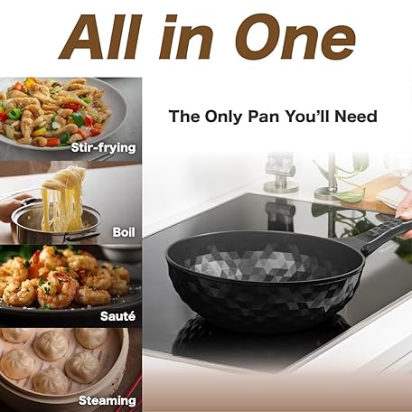 Thông tin sản phẩm Diamond X Premium Non Stick Wok Pan - 11" Large Flat Bottom Chinese Wok - Woks & Stir-fry Pans Nonstick - Titanium-Coated 8-Layered Korean Engineered Skillet for Frying, Oil-Free, PFOA-Free