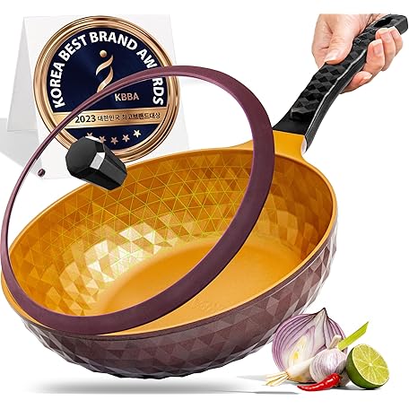 Sản phẩm Diamond X Premium Non Stick Wok Pan with Lid - 11" Large Flat Bottom Chinese Wok - Woks & Stir-fry Pans Nonstick - Titanium-Coated 8-Layered Korean Engineered Skillet for Frying, Oil-Free, PFOA-Free đang được bán với giá ưu đãi là $92.6391 tại nước Mỹ.