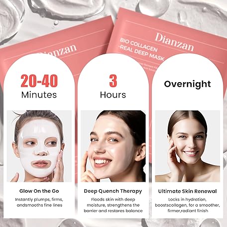 Thông tin sản phẩm Dianzan Korean Overnight Bio-Collagen Mask, Deep Moisturizing, Firming, Glowing Glass Skin Mask, Brings Glass-Like Glow, Shrinks Pores, Diminishes Fine Lines, Gentle on Sensitive Skin, 35g x 4ea