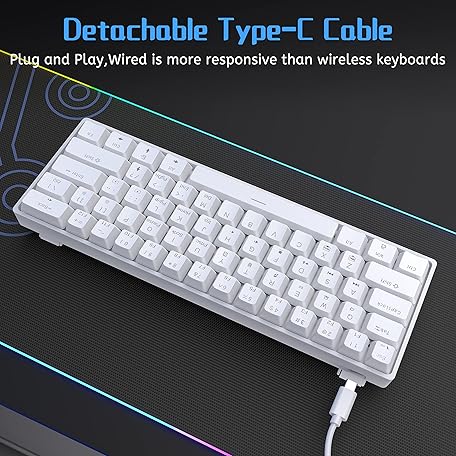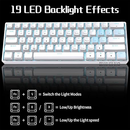Thông tin sản phẩm DIERYA 60% Mechanical Keyboard, DK61se Wired Gaming Keyboard with Red Switches, LED Backlit Ultra-Compact 61 Keys Mini Office Keyboard for Windows Laptop PC Gamer Typist(White)