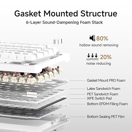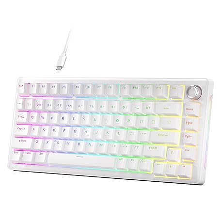 Thông tin sản phẩm DIERYA DK81E 75% Mechanical Gaming Keyboard, Hot-Swappable, Pre-Lubed Linear Switches, Gasket-Mount, 6-Layer Dampening Foam, Programmable, Volume Knob, RGB Backlit, Double-Shot Keycaps, Wired, White