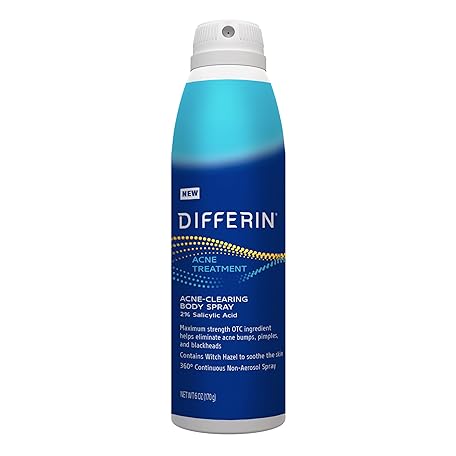 Thông tin sản phẩm Differin Acne Body Spray, Acne Treatment with Salicylic Acid by the makers of Differin Gel, 360 Formula for Back Acne, Chest and Shoulders, 6 oz