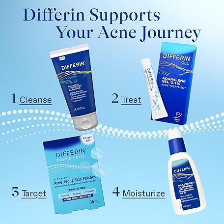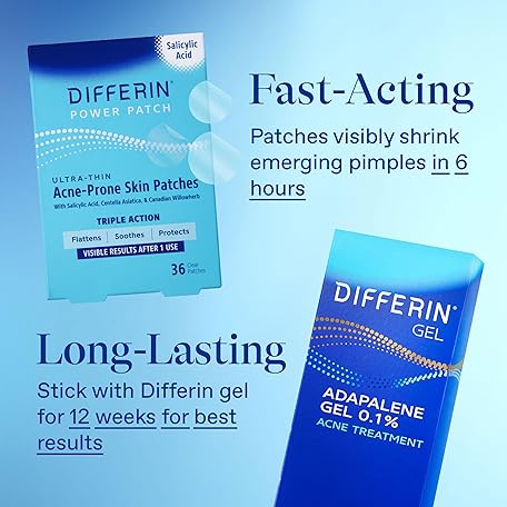 Differin Acne Fighter Pack, Gel Retinoid Acne Treatment For Face with 0.1% Adapalene, 15g Tube + Salicylic Acid Pimple Patches, 36 Count, Designed for Pimple and Acne-Prone Skin