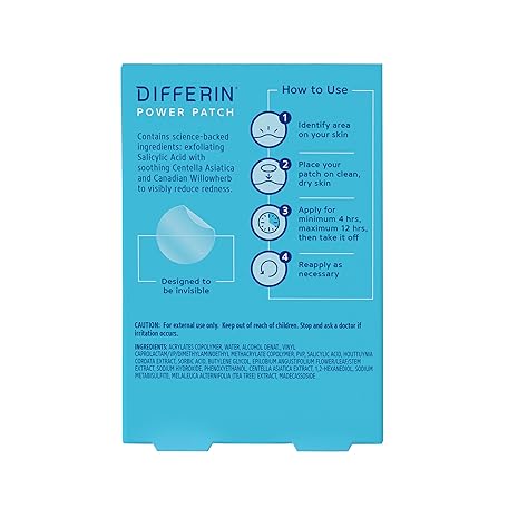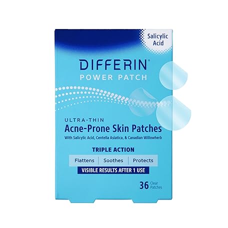 Thông tin sản phẩm Differin Acne Patches, Pimple Patches for Acne Prone Skin, Formulated with Salicylic Acid and Centella, Fast Triple Action Power Patch for Day & Night, Dermatologist Tested, 36 Count