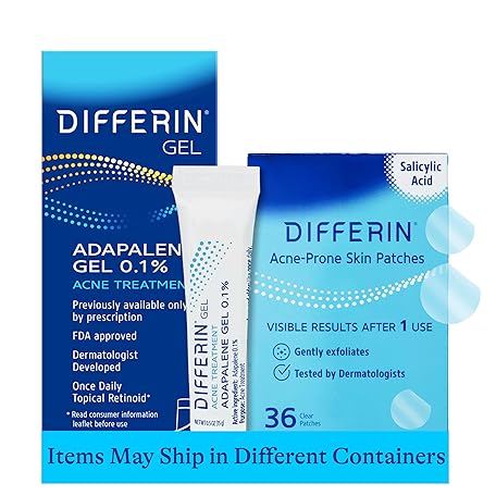 Thông tin sản phẩm Differin Acne Treatment Gel and Differin Patches Set: 36 Power Patches, 18 large and 18 small patches for acne-prone skin and A30 day retinoid treatment with 0.1% Adapalene, Mother's Day Gifts